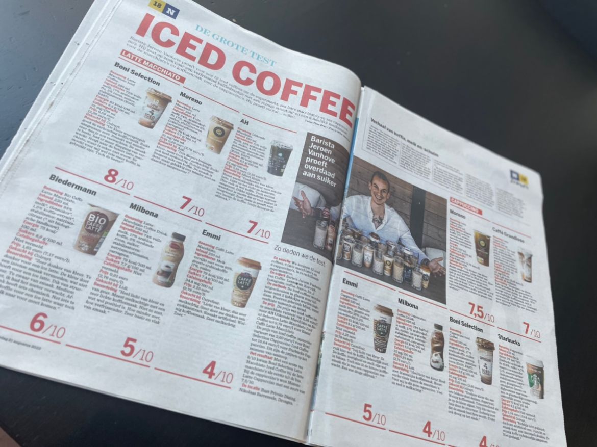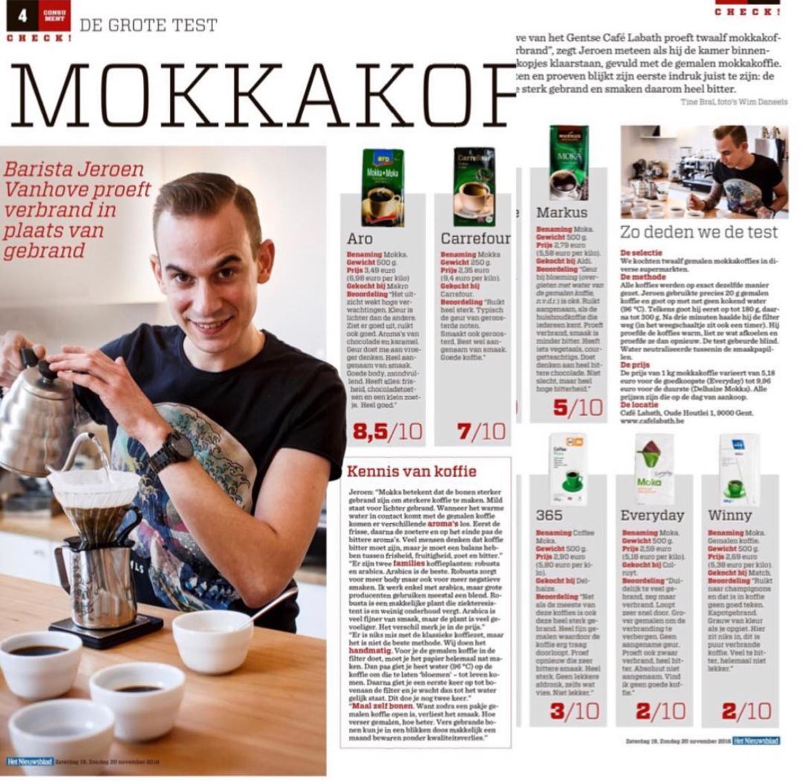 Testen van supermarkt mokka koffies voor Het Nieuwsblad "De Grote Test"